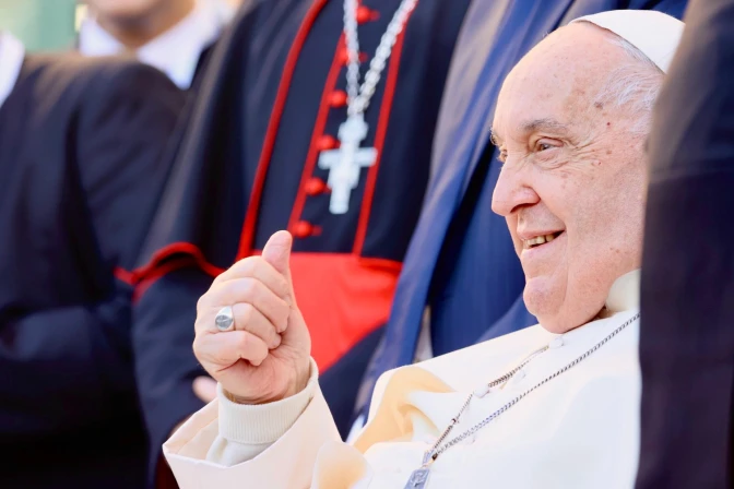 El Papa Francisco antes de su llegada al encuentro con sacerdotes y religiosos en Córcega | Crédito: Daniel Ibáñez/EWTN News